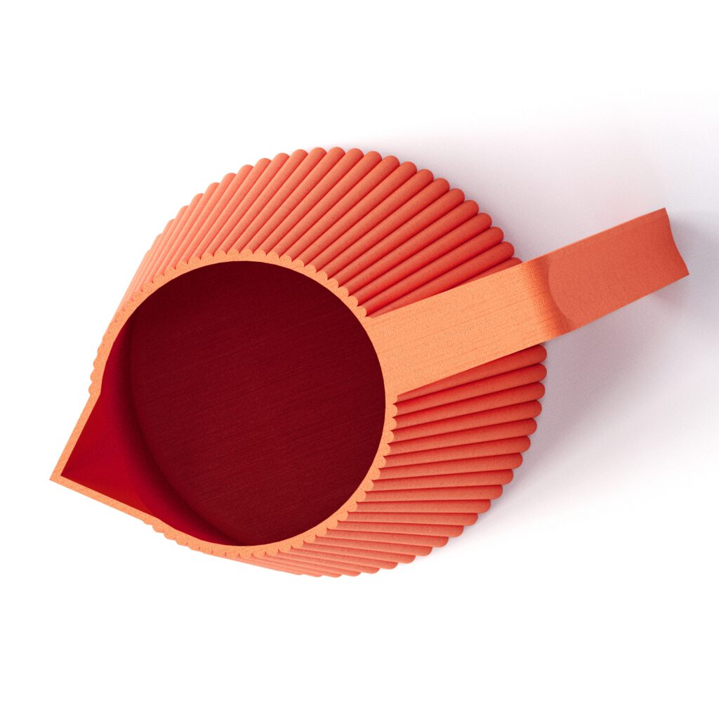 Der VRKANT-Wasserkrug ist eine mutige und moderne Neudefinition eines klassischen Krugs, der mit einem markanten geometrischen Griff und einem fein gerippten konischen Körper ausgestattet ist. Die klaren Linien und das strukturierte Design machen ihn sowohl visuell auffällig als auch praktisch für den täglichen Gebrauch. Ob als skulpturales Objekt ausgestellt, als Vase verwendet oder in wasserdichtem Material zum Servieren von Wasser gedruckt, bringt dieses Stück eleganten Minimalismus in Ihr Zuhause oder Ihre Produktpalette. Er ist vollständig für den 3D-Druck ohne Stützstrukturen optimiert – einfach schneiden und drucken. Das gerippte Design profitiert besonders vom Fuzzy Skin-Modus, der eine angenehme taktile Textur hinzufügt und die Designsprache verbessert.